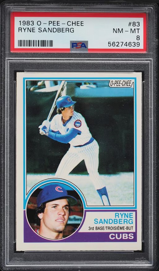 The 1983 O-Pee-Chee Ryne Sandberg rookie card is considered a rare gem among collectors. This card is cherished for its unique design and the nostalgic value it brings to fans of that era. The O-Pee-Chee series, being a Canadian counterpart to Topps, often has a smaller print run, which makes this card more scarce and valuable.